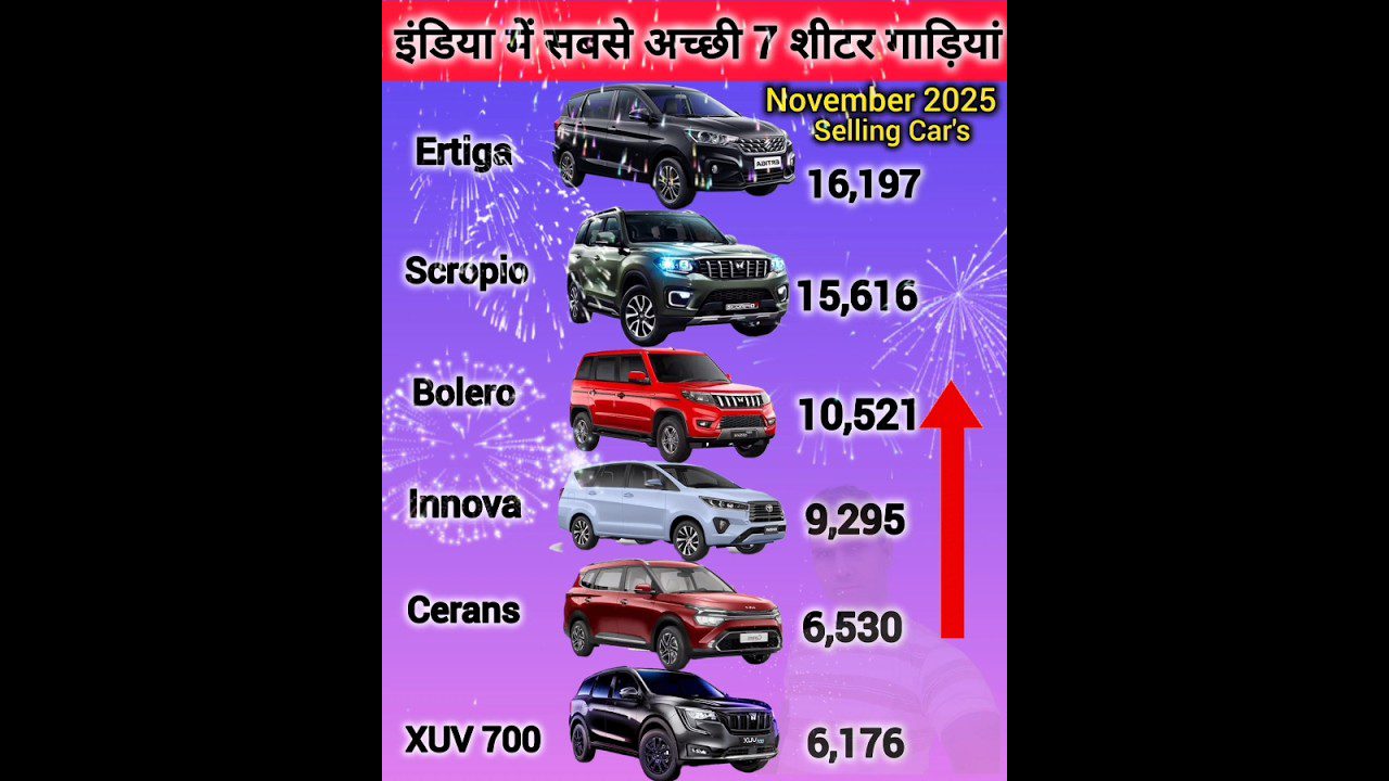 India Ki Top Selling 7 Sitter Cars November 2025 🔥🔥 इंडिया की सबसे अच्छी 7 शीटर कारें ✅️ #viral💯