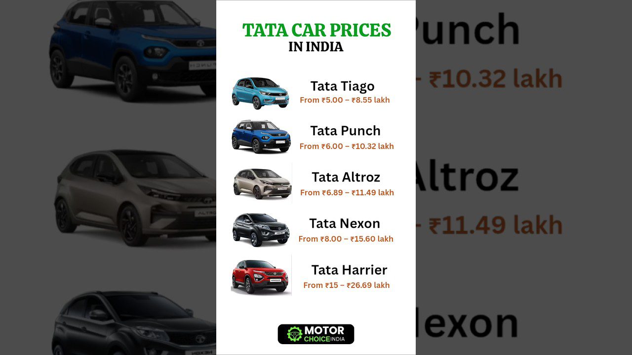 Tata Car Prices 2025: Latest Tata Models Price List | Tata Tiago, Punch, Altroz, Nexon, Harrier