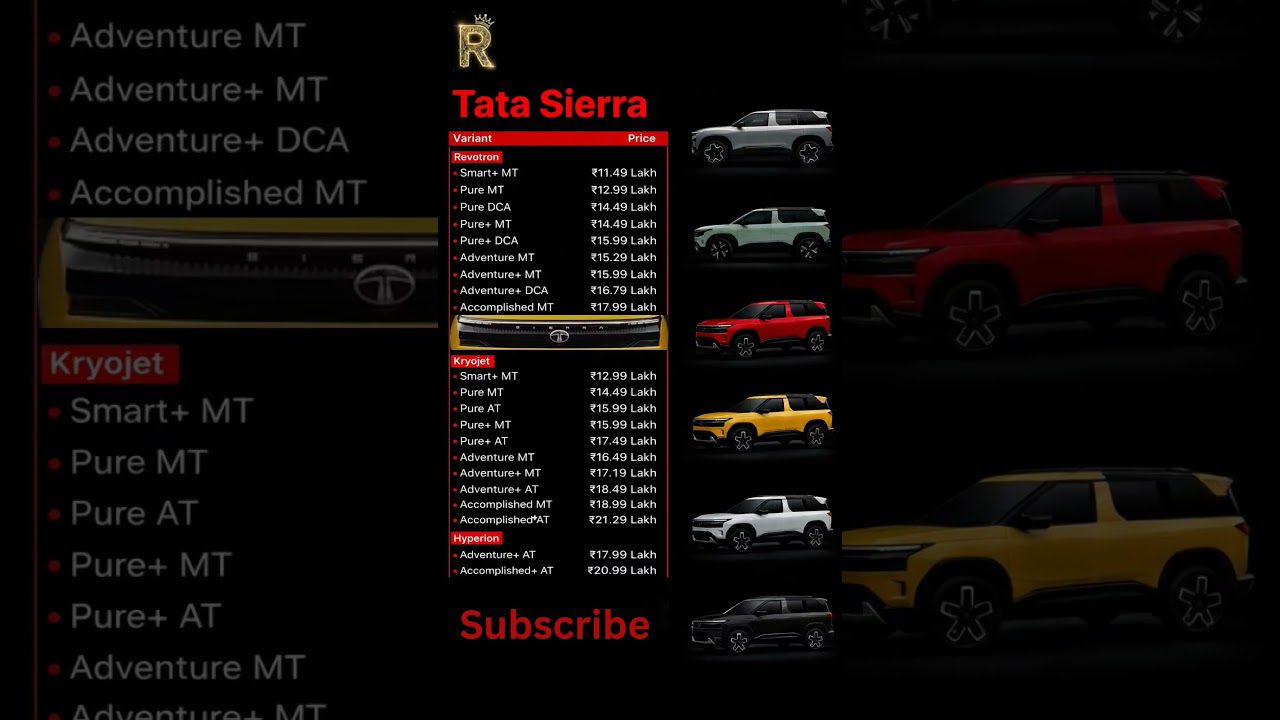 Tata Sierra 2025 | Complete Variant & Price Breakdown | Petrol, Diesel & EV 🔥