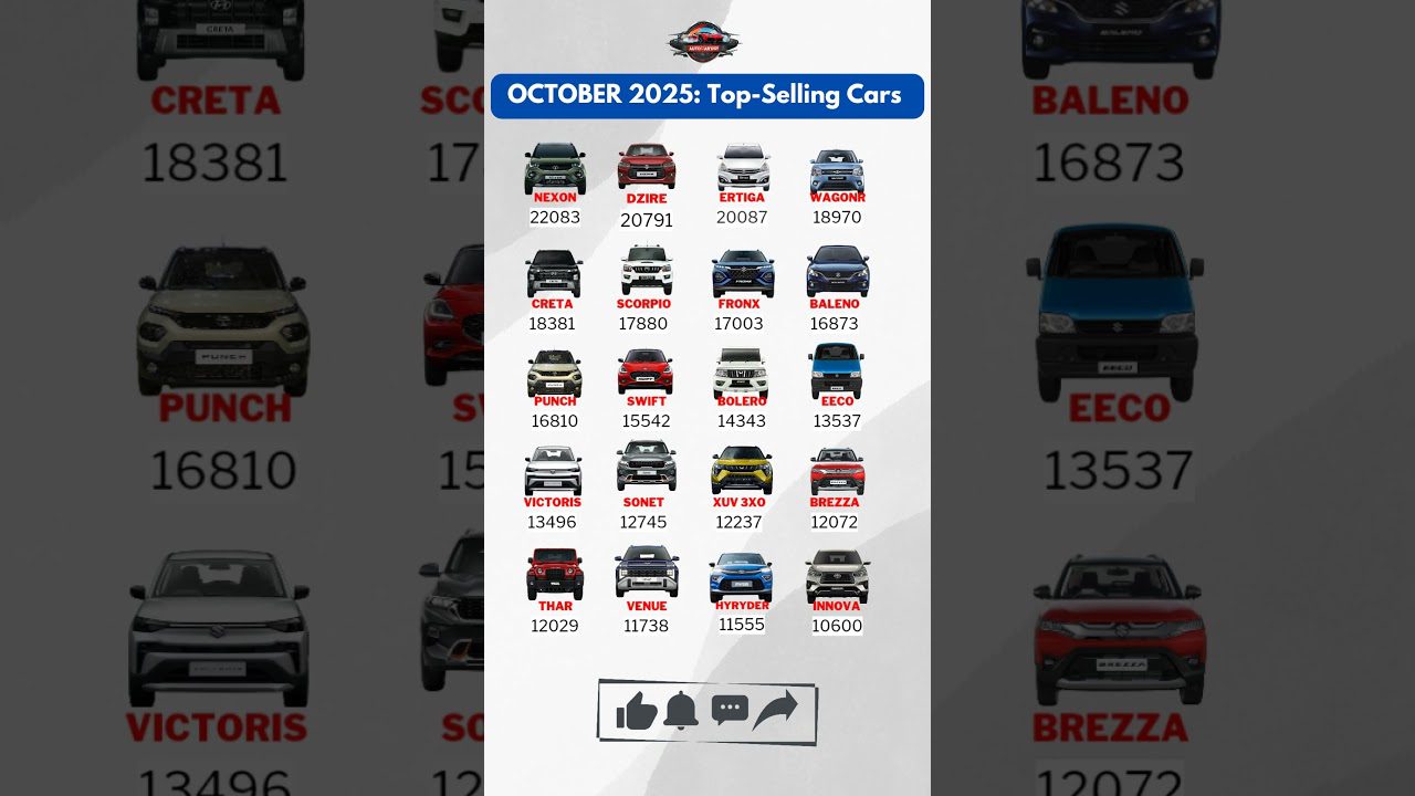 Top-Selling Cars in India – October 2025 🚗🔥 | Monthly Bestseller Rankings